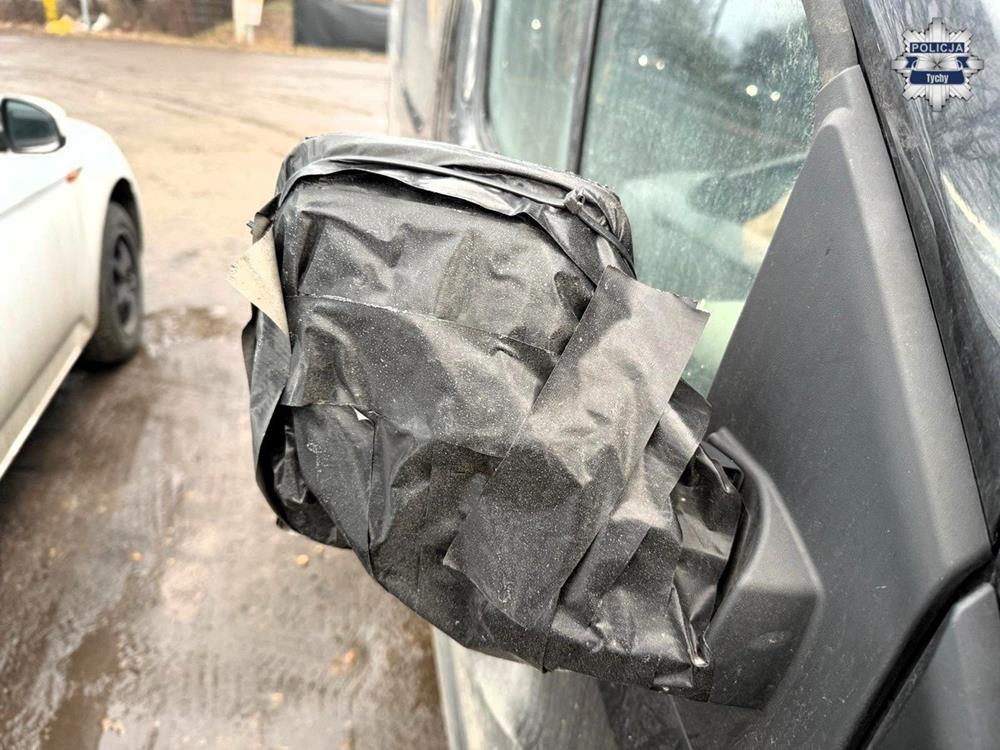 Zewnętrzne lusterko było przymocowane taśmą izolacyjną, natomiast zderzak – opaskami zaciskowymi. W związku z nieprawidłowościami funkcjonariusze zatrzymali dowód rejestracyjny.