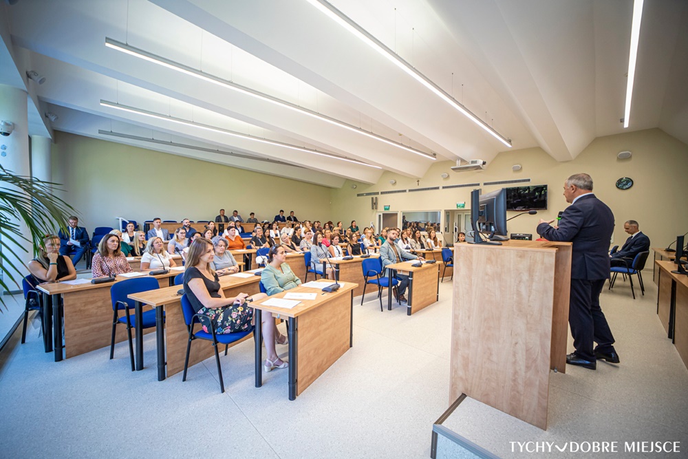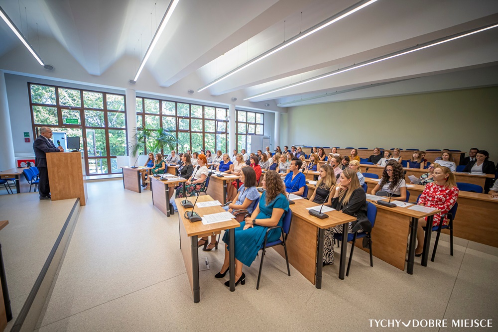 – Odczuwam dumę z tego, jaki poziom reprezentuje tyska oświata. Wiem także, jak wielu z Was angażuje się ponad standardowy wymiar pracy w szkołach, również przy okazji działalności społecznej. Pamiętam też dobrze, jak wielu z Państwa angażowało się w czasach pandemii, później w momencie przyjęcia uchodźców w Ukrainy – za to jestem bardzo wdzięczny – mówił Maciej Gramatyka zastępca prezydenta Tychów.