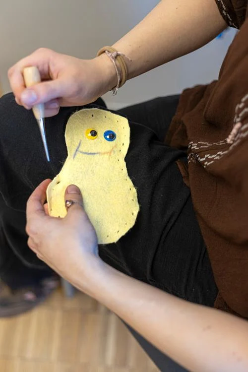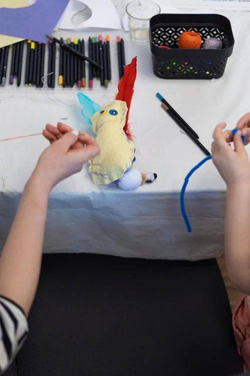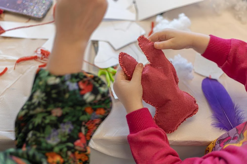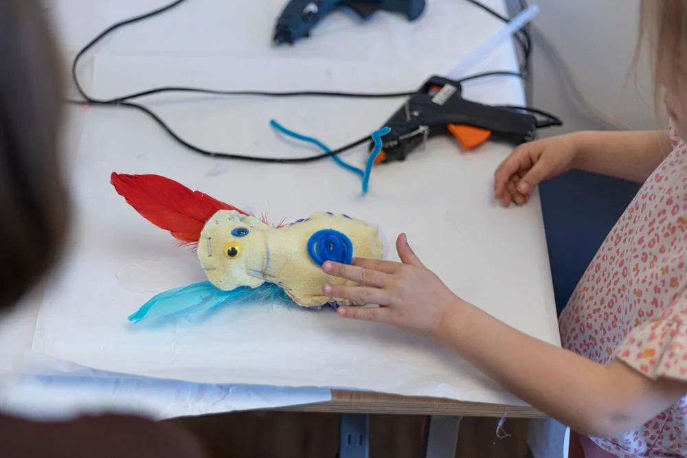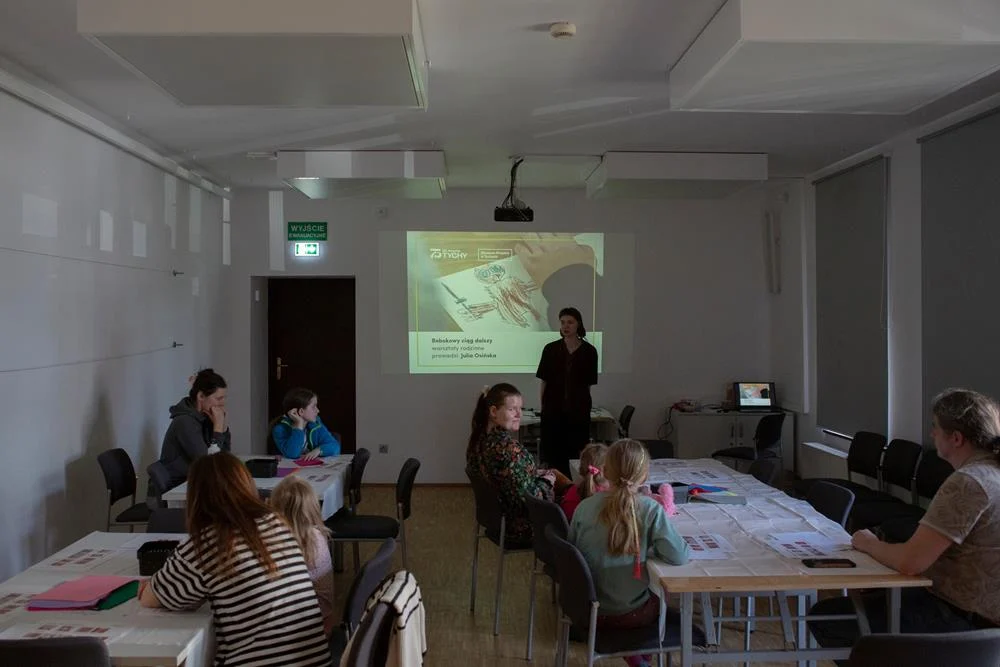 Po części pełnej opowieści i ciekawostek przyszedł czas na działania praktyczne. W części warsztatowej dzieci i dorośli wykonali własne, oswojone beboki-pluszaki z filcu.