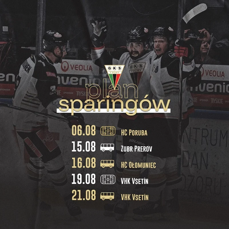 6 sierpnia odbędzie się pierwszy mecz kontrolny, w którym GKS Tychy zmierzy się z HC Poruba, czwartą drużyną czeskiej pierwszej ligi. Spotkanie odbędzie się na Stadionie Zimowym. Po tym meczu czekają tyszanie jeszcze dwa spotkania wyjazdowe.
