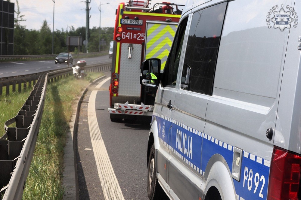Wczoraj, około godziny 09:55, służby ratunkowe zostały powiadomione o wypadku drogowym na DK-1 w Tychach, w kierunku Pszczyny. Kierujący motocyklem marki Yamaha utracił panowanie nad pojazdem, uderzając w bariery energochłonne. 39-letni mężczyzna, po wypadku, trafił do szpitala z obrażeniami.