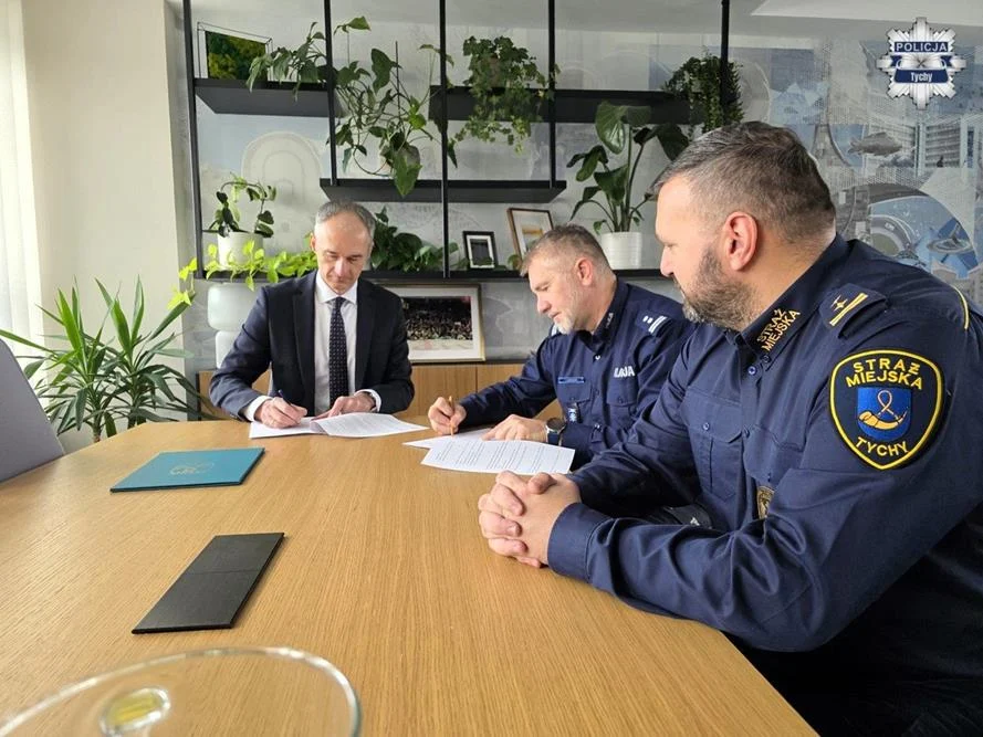 Wczoraj w Urzędzie Miasta Tychy podpisano ważne porozumienie pomiędzy Prezydentem Miasta Tychy Maciejem Gramatyką, Komendantem Komendy Miejskiej Policji w Tychach młodszym inspektorem Tomaszem Zawadzkim, a Komendantem Straży Miejskiej w Tychach Sebastianem Kokoszką. Dokument reguluje zasady współpracy obu formacji w realizacji zadań dotyczących zapewnienia bezpieczeństwa mieszkańcom oraz utrzymania porządku publicznego w mieście.