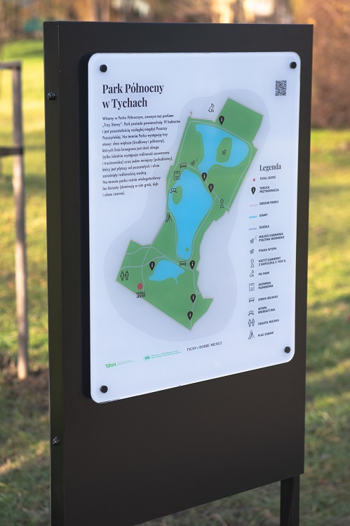 Na terenie parku zamontowano tablicę główną z mapą całego obszaru oraz kilka tablic tematycznych. Każda z nich zawiera krótkie opisy, ilustracje oraz kody QR, które prowadzą do dodatkowych informacji dostępnych na stronie Tyskiego Zakładu Usług Komunalnych. To świetna okazja, by podczas spaceru zgłębić wiedzę o przyrodzie, którą często mijamy nie zauważając.