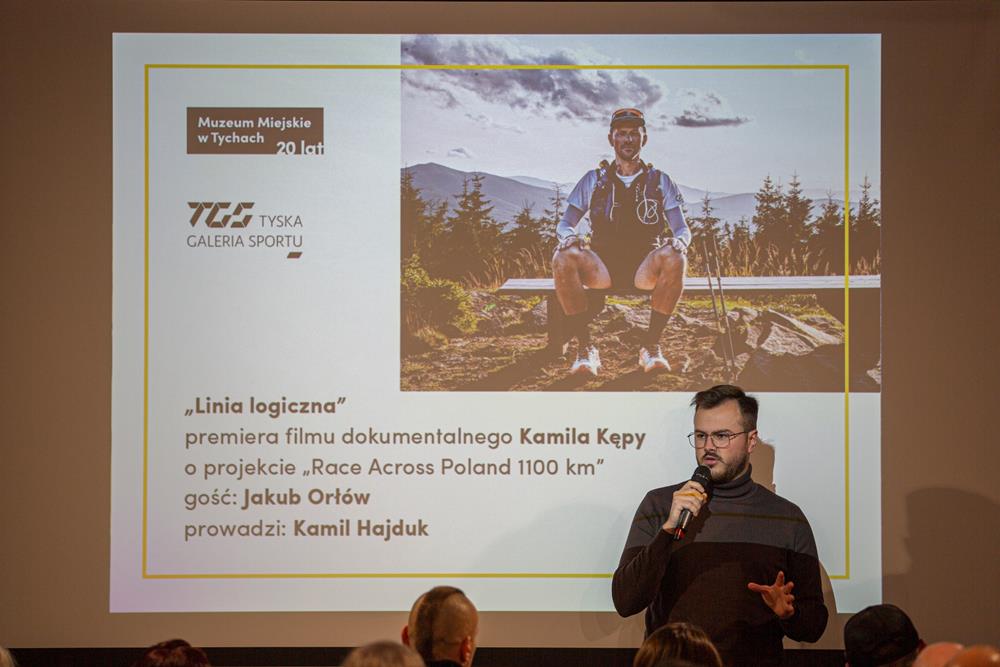 Tyska Galeria Sportu gościła wyjątkowe wydarzenie, które przyciągnęło blisko 100 osób. W ramach spotkania odbyła się premiera filmu dokumentalnego „Linia (nie)logiczna”, który opowiadał historię Kuby Orłowa i jego niezwykłego wyzwania – przebiegnięcia 1100 kilometrów przez Główny Szlak Beskidzki i Główny Szlak Sudecki w ramach projektu Race Across Poland 1100km 2025.