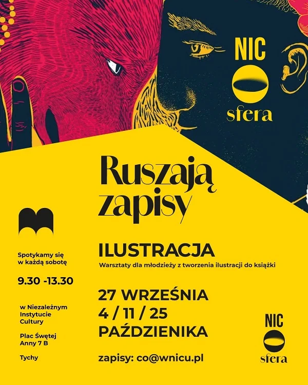 Niezależny Instytut Kultury w Tychach zaprasza młodzież w wieku 15-20 lat do udziału w warsztatach ilustracji do książki. Zajęcia poprowadzi Monika Urbaniak, ilustratorka i graphic designer, której prace można zobaczyć na Instagramie pod adresem @muillu oraz na stronie internetowej www.muillu.pl. Warsztaty to doskonała okazja, by rozwinąć swoje umiejętności w tworzeniu ilustracji i poznać tajniki pracy nad książkami dla młodszych czytelników.