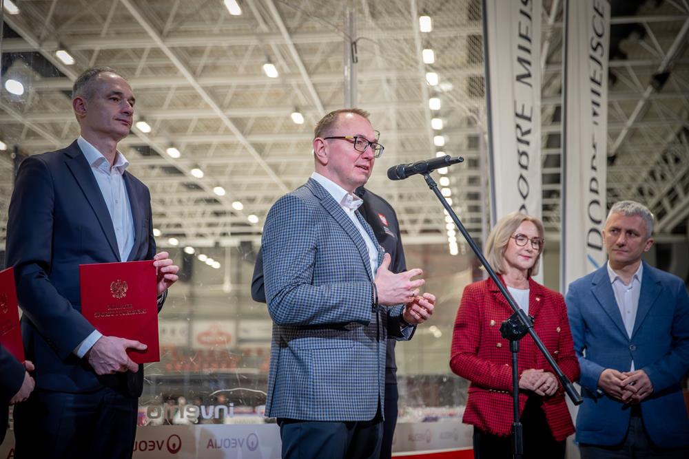 Minister Rutnicki podkreślił, że budowa całorocznego lodowiska w Tychach jest częścią szerszego programu, którego celem jest poprawa dostępności infrastruktury lodowej w Polsce.