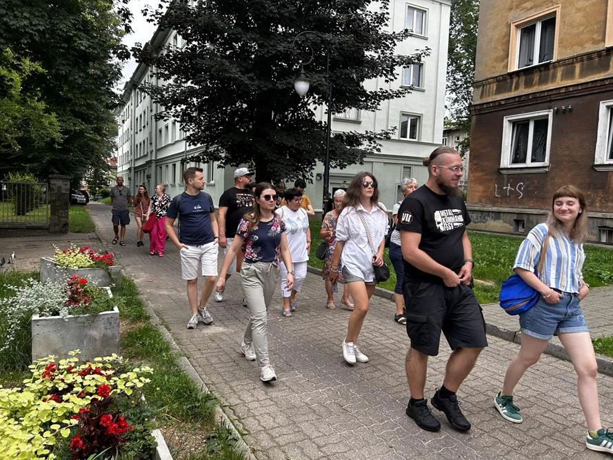 Spacer umożliwił również poznanie elementów realizmu socjalistycznego, który miał istotny wpływ na projektowanie i dekorację Tyskiego Osiedla A. Uczestnicy dowiedzieli się o genezie tego wyjątkowego założenia urbanistycznego, które do dziś stanowi unikatowy punkt wśród innych inwestycji z tego okresu.