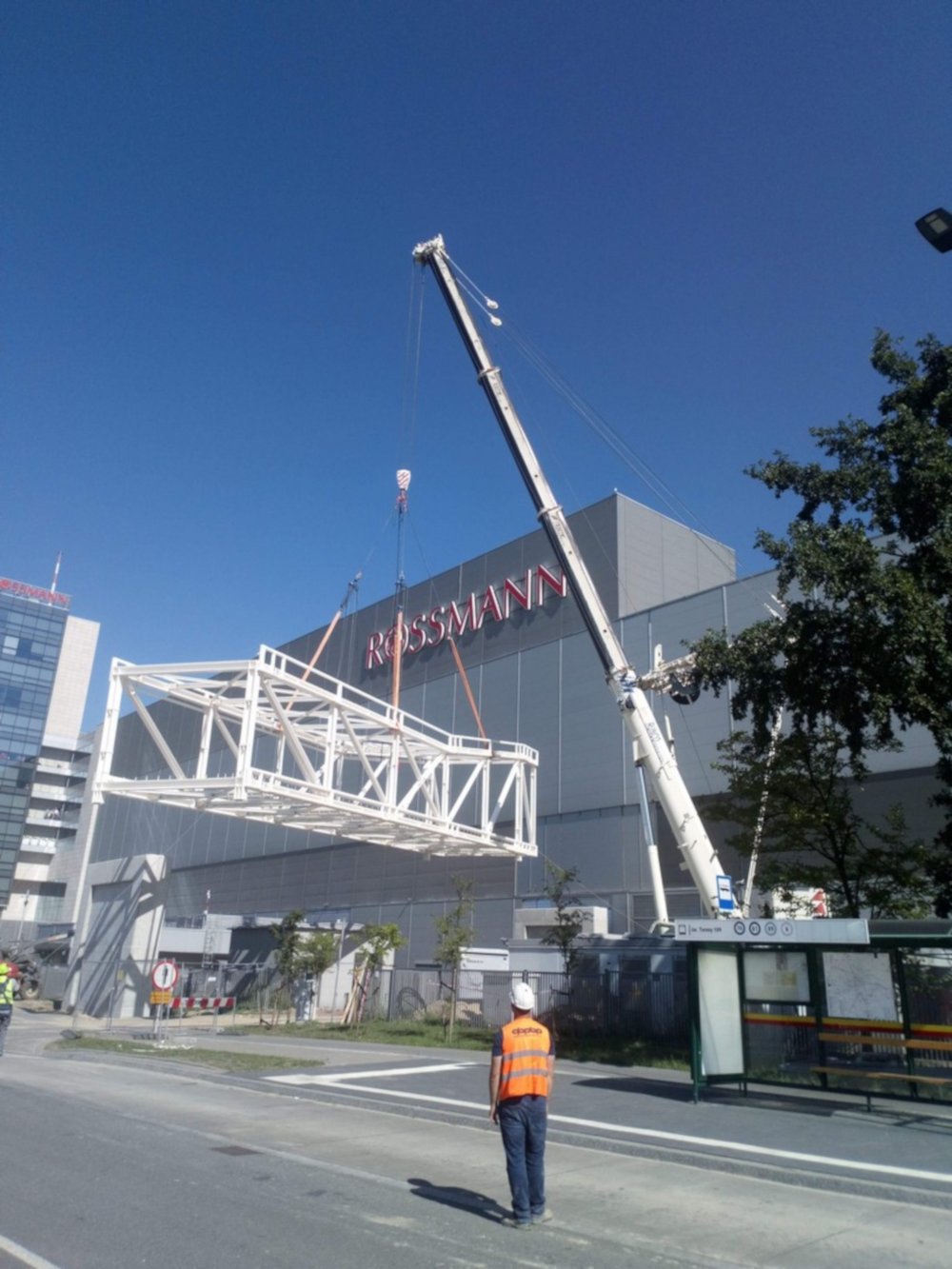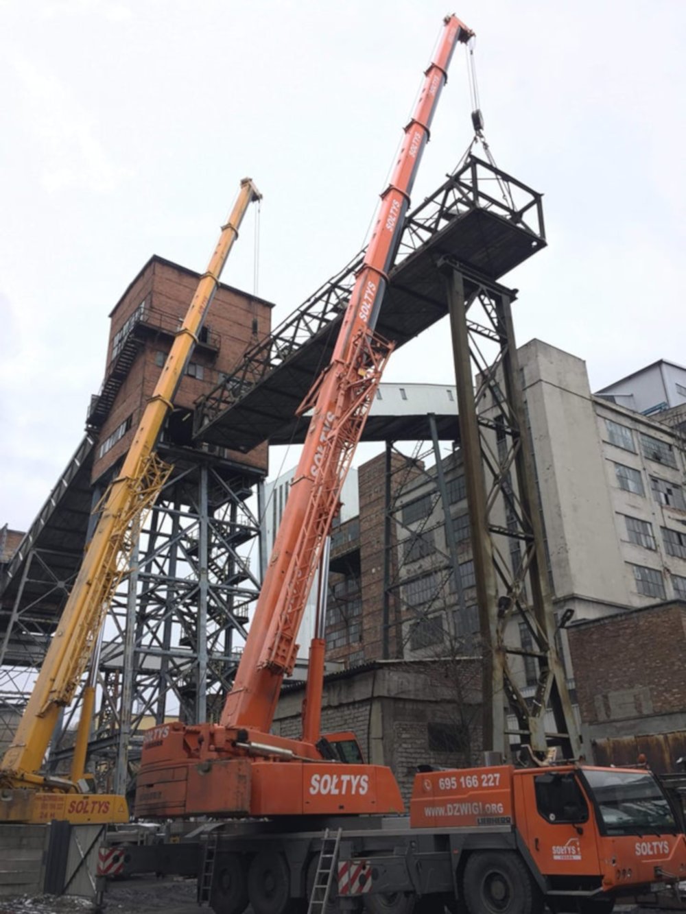 Żurawie samojezdne pozwalają na realizowanie zleceń w miastach, gdzie utrudnione są inne usługi dźwigowe. Katowice są przykładem, który chętnie przywołujemy. Podnoszenie realizowane było w trakcie budowy nowego centrum handlowego. Możliwość przemieszczania się swobodnie po placu budowy umożliwiło prawne zainstalowanie szyldu reklamowego na nowej galerii.