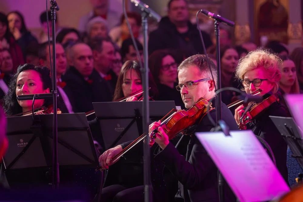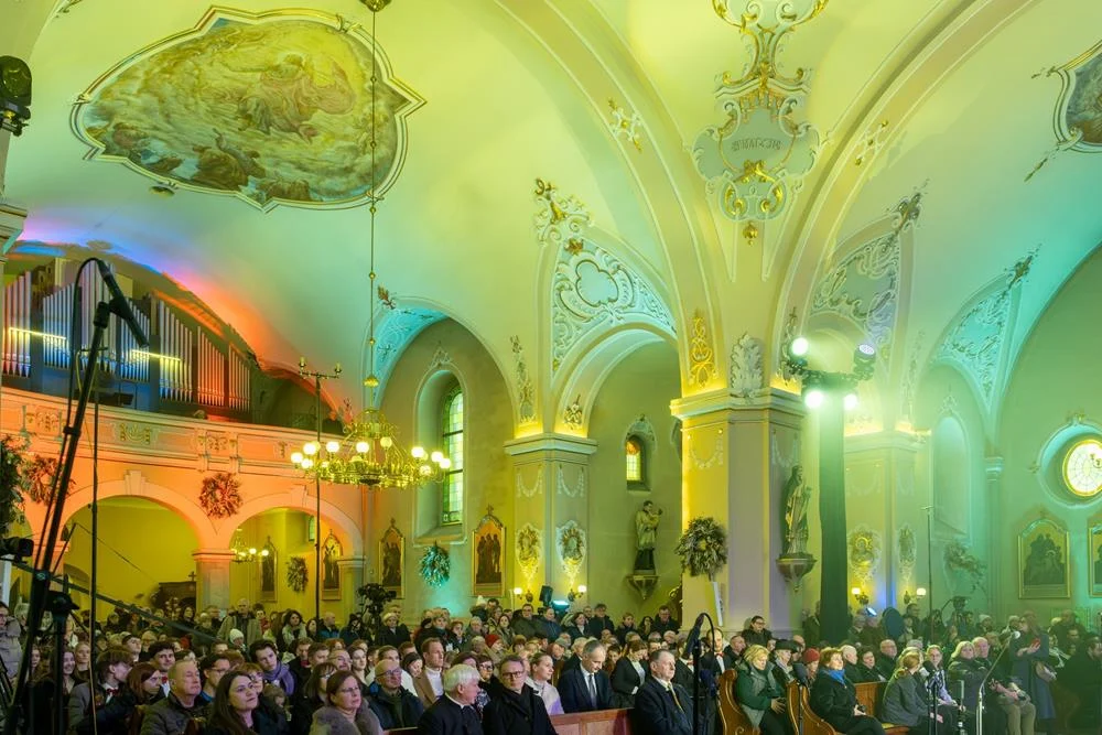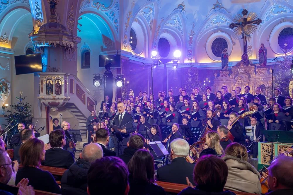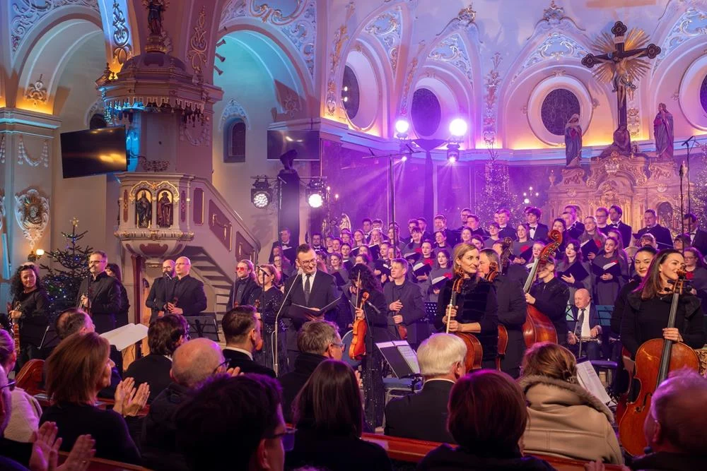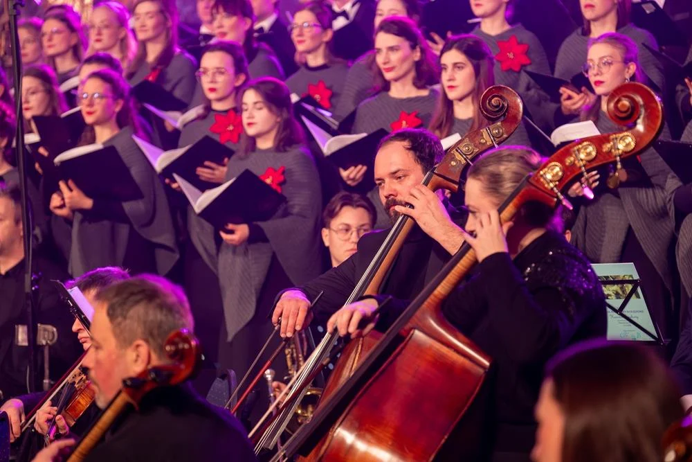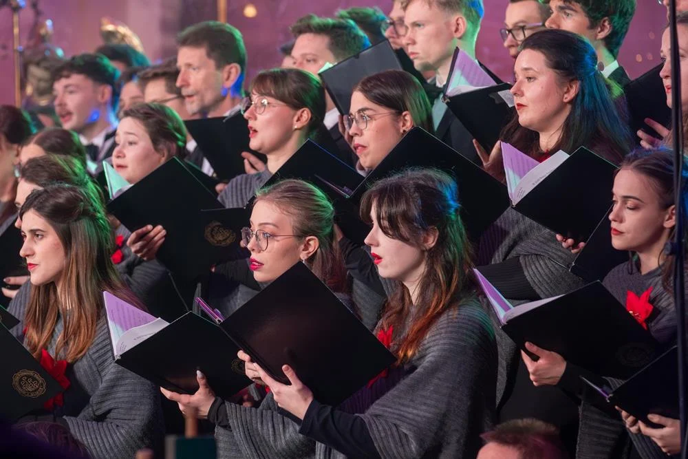 Finałowym akcentem koncertu było wspólne wykonanie kolędy „Bóg się rodzi”, które połączyło artystów i publiczność, symbolizując zakończenie wieczoru w atmosferze jedności i świątecznej radości.