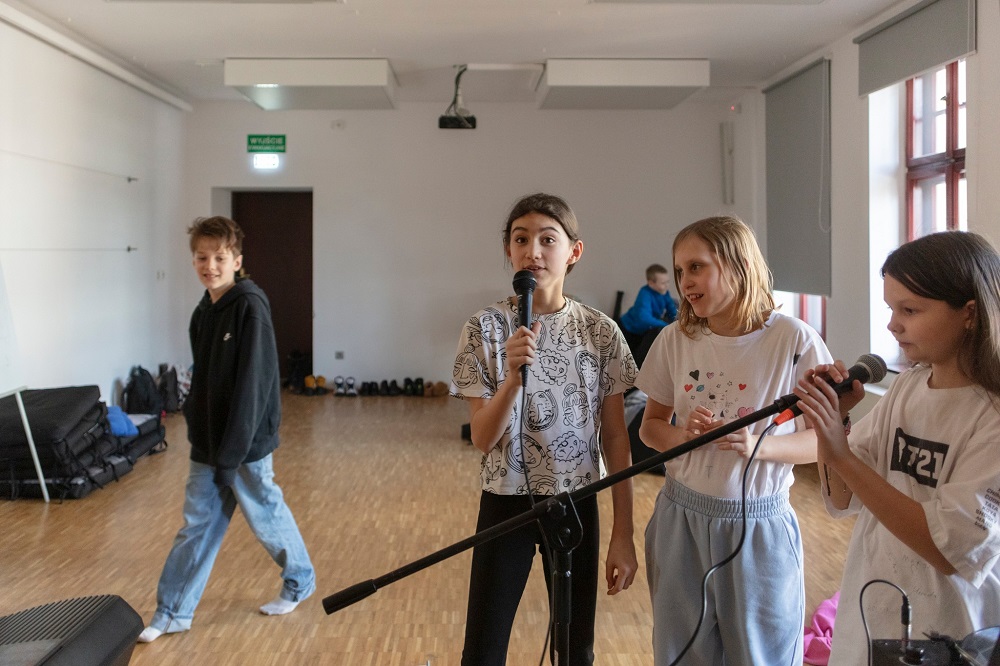 Uczestnicy mogli również testować swoje głosy przez mikrofon, bawić się efektami dźwiękowymi oraz analizować udźwiękowienie w ulubionych kreskówkach. Poznali podstawy pracy dźwiękowca i tworzyli własną bibliotekę dźwięków, nagrywając otaczającą ich rzeczywistość.