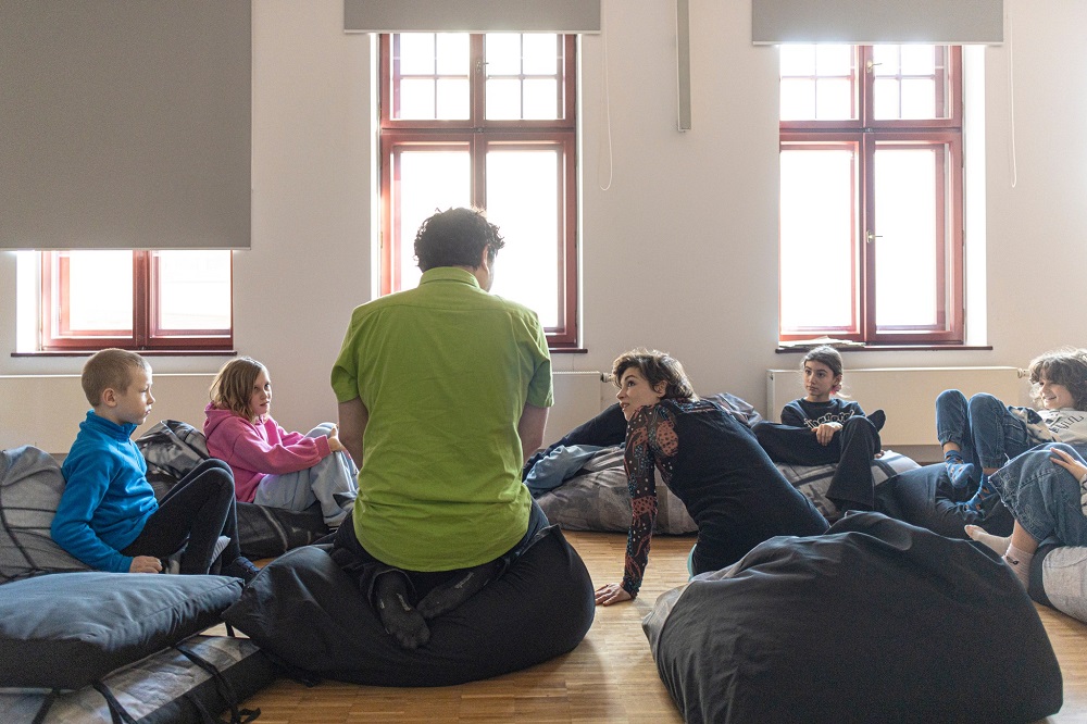 Dzieci rozpoczęły warsztaty od refleksji nad tym, czym jest słuch i jak wpływa na nasze codzienne życie. Tworzyły słowniczek słuchania, ucząc się opisywać dźwięki oraz rozpoznawać ich znaczenie. Przyglądały się odgłosom miasta, domu i szkoły, zastanawiając się, gdzie w Tychach można znaleźć oazy dźwiękowe – miejsca sprzyjające świadomemu słuchaniu i odpoczynkowi.