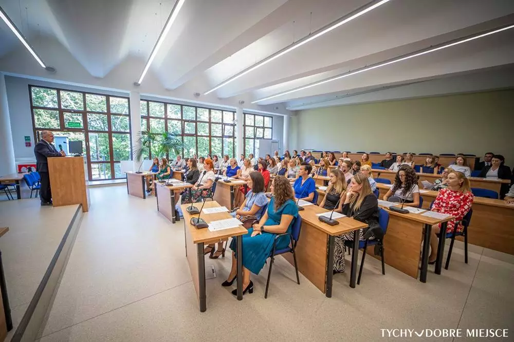 - Jesteśmy pełni podziwu dla Waszej pracy - mówił podczas uroczystości Andrzej Dziuba, prezydent Tychów. - To Wy kształtujecie, uczycie naszą młodzież i to dla nas jest priorytet. Dziękuję za Waszą pracę - te obiektywne kryteria typu rankingi, wyniki egzaminów to wszystko lokują tyską oświatę bardzo wysoko. Jesteśmy z tego bardzo dumni, nasza przyszłość - wychowanie młodych pokoleń jest w Waszych rękach.