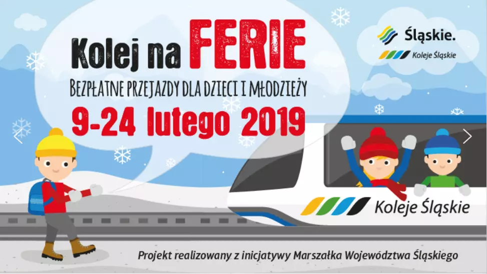 W czasie tegorocznych ferii w województwie śląskim dzieci i młodzież mogą podróżować Kolejami Śląskimi za darmo!