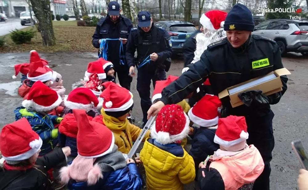 Patrol dzielnicowych był dzisiaj nieco inny niż zwykle. Składał się z policjantów, którzy wraz ze świętym Mikołajem oraz strażnikami miejskimi przechadzali się ulicami miasta w rejonie osiedla „A”. Przedsięwzięcie realizowane było wspólnie z pomocnicami Mikołaja, czyli przedstawicielkami Fundacji Rozwoju Ekonomii Społecznej w Tychach. Tym razem o bezpieczeństwie w ramach kampanii „Dzielnicowy bliżej nas”, rozmawiali nie tylko mundurowi, ale i sam Mikołaj. Dzieci prócz drobnych prezentów otrzymały dawkę wiedzy. Patrol wywołał najwięcej emocji wśród najmłodszych, jednak i dorośli z pewnością skorzystają z porad mundurowych. W celu ograniczenia przypadków związanych z oszustwami przez internet została stworzona ulotka promująca właściwe zachowania w sieci. Wszystko dzięki współpracy mundurowych z Urzędem Miasta w Tychach oraz Fundacją Rozwoju Ekonomii Społecznej w Tychach. Prowadzone działania profilaktyczne miały na celu przede wszystkim zwrócić uwagę na bezpieczeństwo.