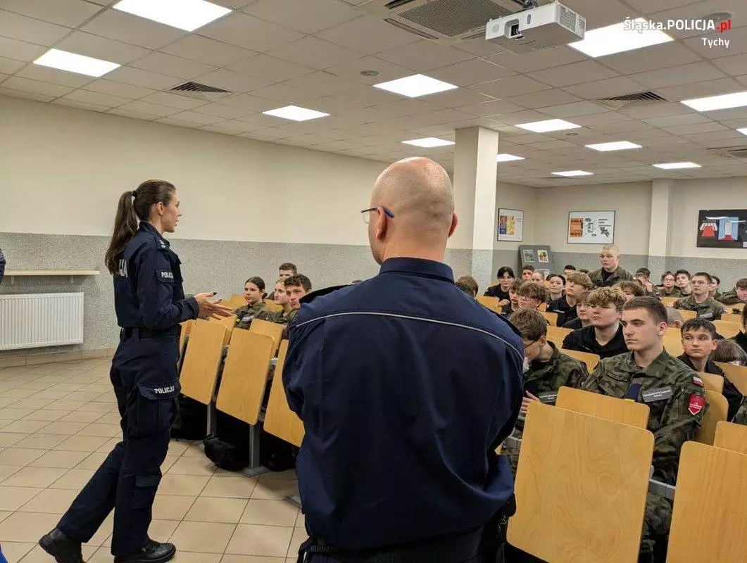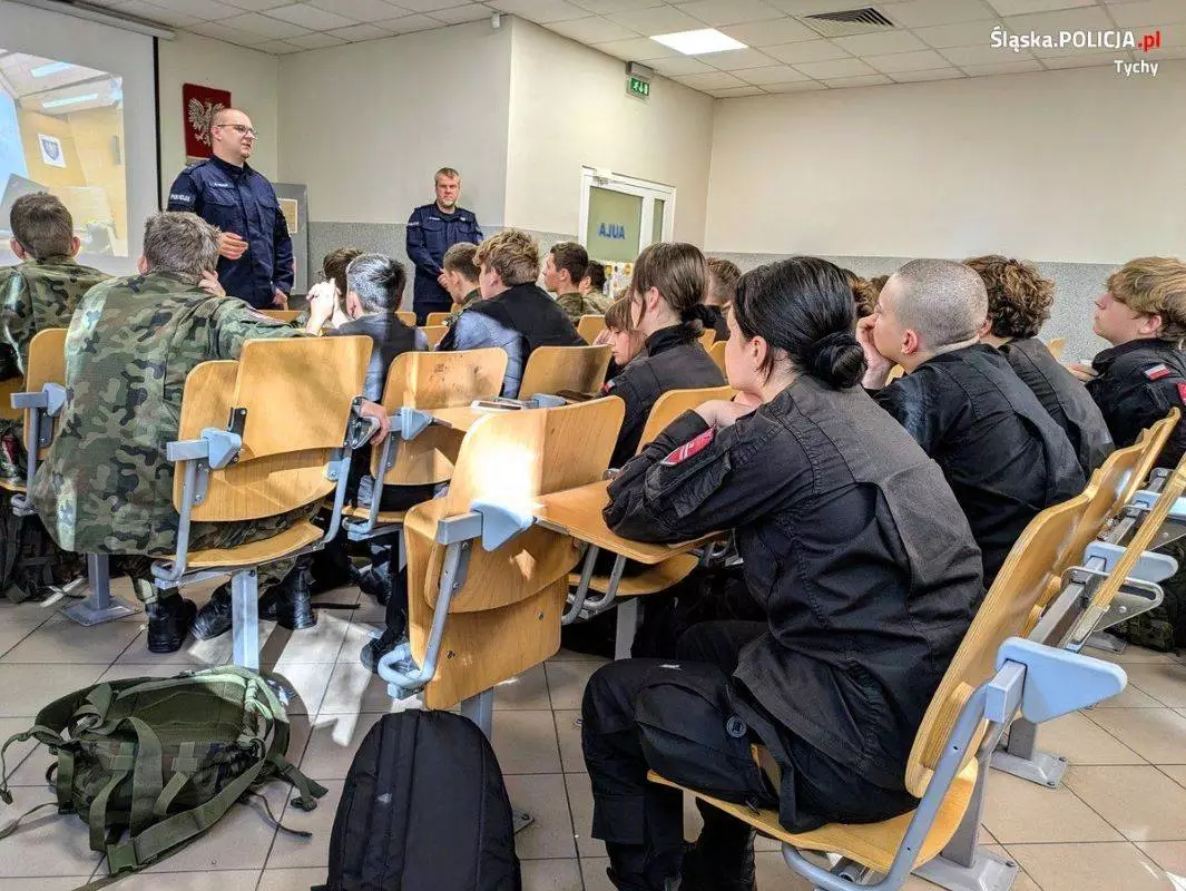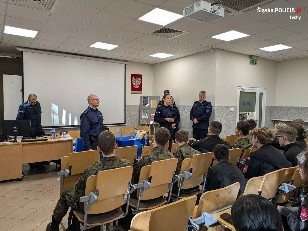 Policjanci z Tychów i Katowic uczestniczyli wczoraj w zajęciach dla uczniów klas mundurowych w Zespole Szkół im. Orląt Lwowskich w Tychach. W rozmowach z uczestnikami stróże prawa przekazali wiele ciekawych informacji związanych ze służbą w Policji oraz zapoznali ich z poszczególnymi etapami rekrutacji. Spotkanie było okazją do zachęcenia młodzieży, by po zakończonej szkole wstąpić w szeregi mundurowych.