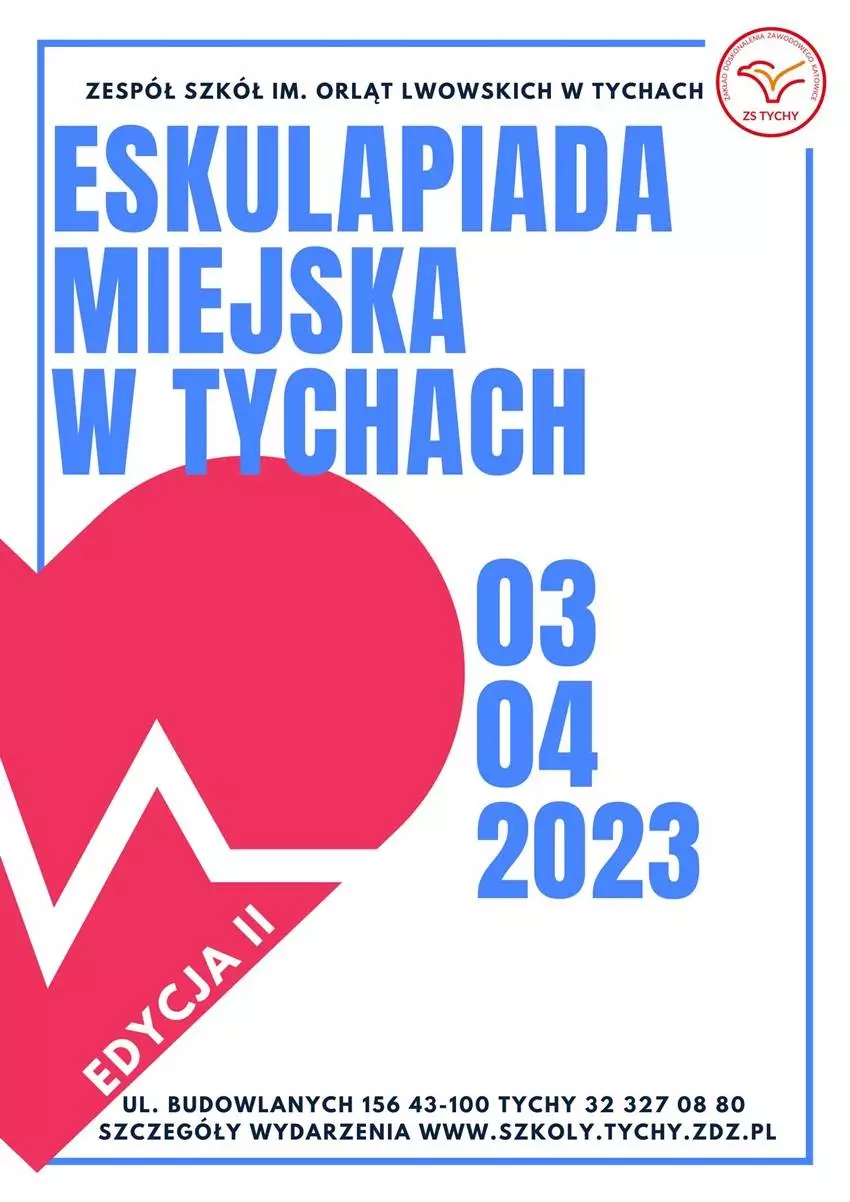 W poniedziałek 3 kwietnia w Zespole Szkół im. Orląt Lwowskich w Tychach (ZDZ w Katowicach) odbędzie się II Miejska Eskulapiada. Do wydarzenia zgłaszać się mogą 3-osobowe drużyny mieszane - przedstawiciele 7 i 8 klas podstawowych.