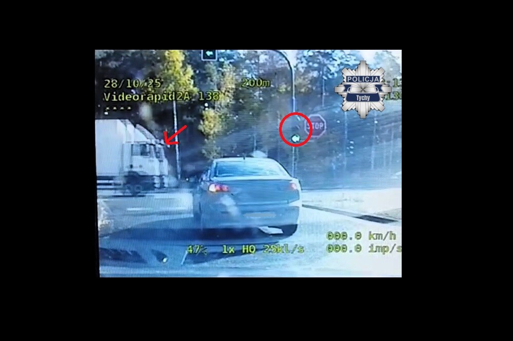 We wtorek, 28 października, na skrzyżowaniu drogi wojewódzkiej numer 928 z drogą krajową numer 1 w Kobiórze doszło do niebezpiecznego manewru, który zakończył się interwencją tyskiej policji. Kierowca samochodu ciężarowego zignorował sygnalizację świetlną i przejechał na czerwonym świetle. To niebezpieczne zachowanie zostało zarejestrowane przez funkcjonariuszy pełniących służbę w nieoznakowanym radiowozie.