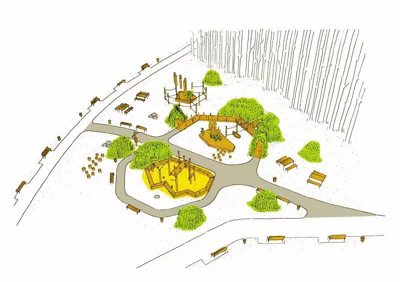 - Plac zabaw będzie wykorzystywał podmokły charakter terenu (powstanie na miejscu rozebranego placu zabaw). Nie będzie to typowy plac zabaw z urządzeniami zabawowymi, a ogród z drewnianych kładek, tuneli z żywej wierzby, zręcznościowego linowego toru, głazów i wielkiej piaskownicy – mówi Jan Cofała - naczelnik wydziału Innowacji i Inwestycji UM Tychy.
