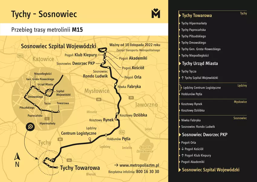 W czwartek 10 listopada uruchomiona zostanie nowa linia metropolitalna M15 relacji Tychy - Lędziny - Mysłowice - Sosnowiec. Tym samym zostanie zapewnione bezpośrednie połączenie Tychów z Sosnowcem oraz południowymi rejonami Mysłowic i Lędzin.