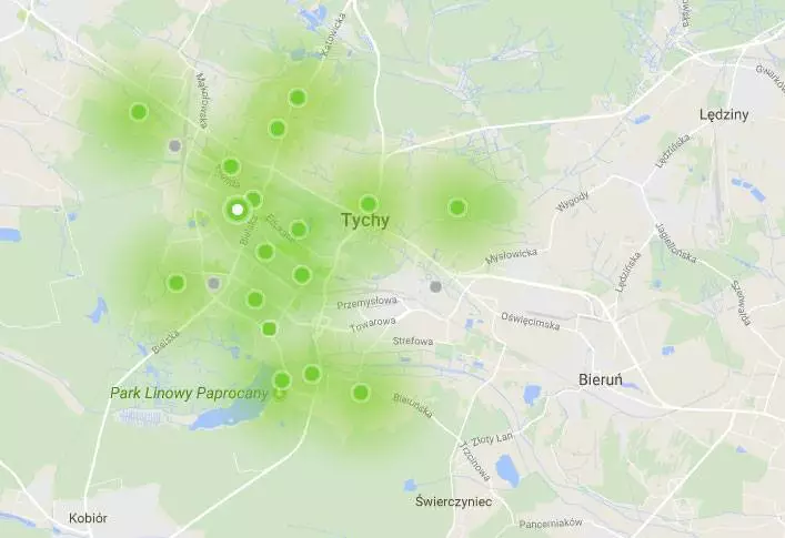 Pierwszych 10 czujników zamontowało w Tychach we wrześniu ubiegłego roku głównie na szkołach i budynkach jednostek gminnych, przede wszystkim w obrzeżnych dzielnic miasta (na ul. Myśliwskiej, Leśnej, Cmentarnej, Jedności, Zgrzebnioka, Tołstoja, Parkowej, Katowickiej, Pogodnej i na Placu Wolności). Od początku zakładano rozbudowę systemu i zwiększenie liczby czujników w Tychach. Teraz te plany są wdrażane w życie.