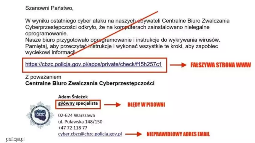 Pojawił się nowy typ ataku polegający na przesyłaniu wiadomości e-mail rzekomo pochodzącej z Centralnego Biura Zwalczania Cyberprzestępczości.
