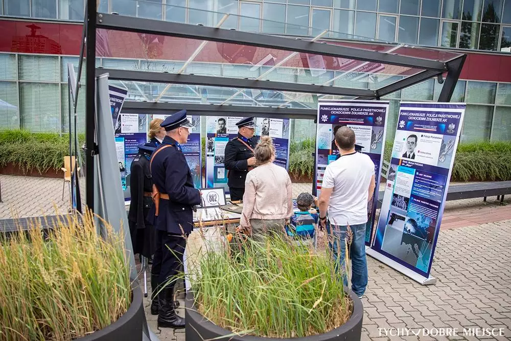 W ramach obchodów święta policji przed budynkiem Mediateki zorganizowano także gry, zabawy i niespodzianki dla dzieci m.in. policyjna grupa rekonstrukcyjna, Sznupek - maskotka śląskiej policji, dmuchany zamek dla najmłodszych, radiowozy i motocykle policyjne, konie i psy policyjne, a także symulatory dachowania zderzeniowy.