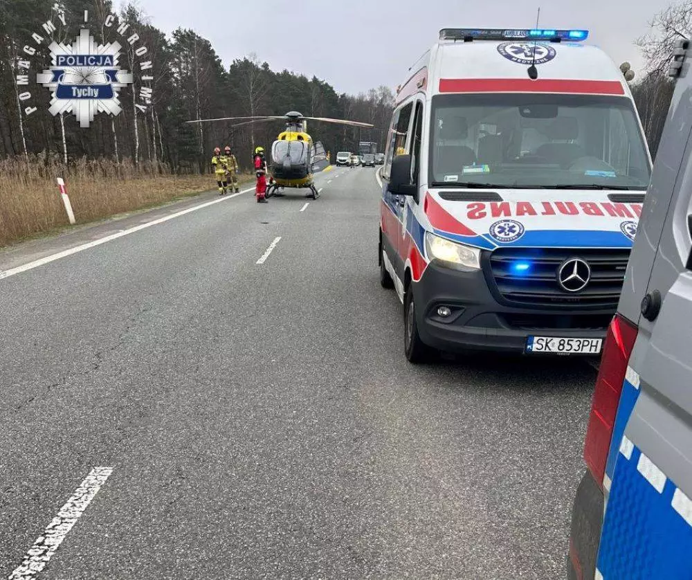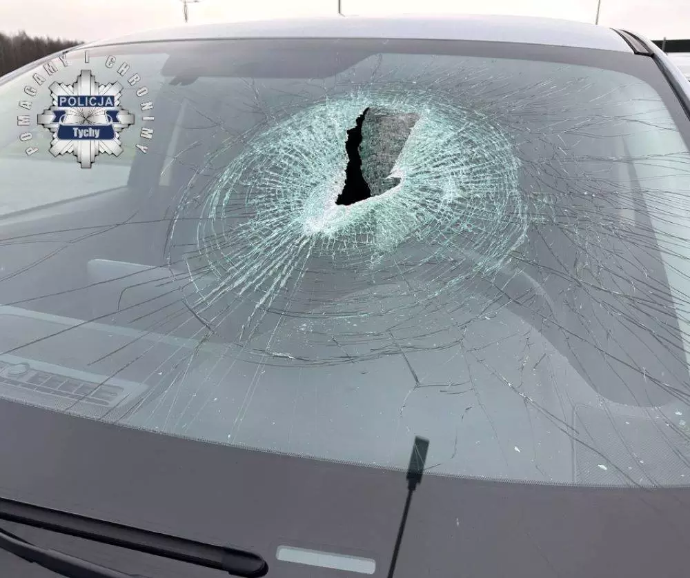 Dyżurny tyskiej jednostki został powiadomiony o zdarzeniu drogowym, do którego doszło wczoraj około godziny 13.00 na trasie DK-86 w Tychach, na pasie w kierunku Pszczyny. Pracujący na miejscu policjanci ruchu drogowego ustalili, że spod kół pojazdu jadącego przed samochodem osobowym marki Mazda, został wyrzucony odłamek asfaltu, który przebił przednią szybę, raniąc kierującego osobówką. Na miejsce zostały zadysponowane służby medyczne, w tym Lotnicze Pogotowie Ratunkowe. Po udzieleniu pomocy 34-letniemu kierującemu został on przetransportowany do szpitala - na szczęście w stanie niezagrażającym życiu i zdrowiu. Pasażerka samochodu osobowego nie odniosła żadnych obrażeń.