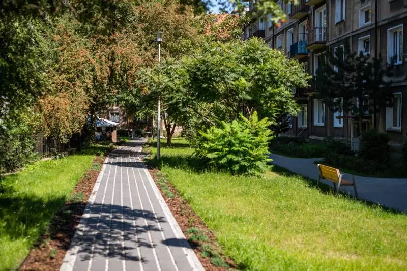 Dla najmłodszych mieszkańców powstał plac zabaw, dla starszych – stanowisko do gry w szachy. Całość dopełniona została rabatami i nasadzeniami zieleni wzdłuż chodników, gdzie mieszkańcy mogą spędzać czas, korzystając z zamontowanych ławek parkowych. To jednak nie wszystko - wiosną planowane jest uzupełnienie podwórka o łąkę kwietną.