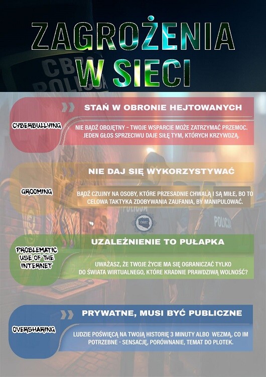 Internet to przestrzeń, w której codziennie uczymy się, dzielimy pasjami i nawiązujemy nowe znajomości. Niestety, z każdym kliknięciem możemy napotkać pułapki, które mogą zagrozić naszemu bezpieczeństwu i prywatności. Policja przypomina o kilku istotnych zasadach, które pomogą młodym ludziom bezpiecznie poruszać się w sieci i unikać niebezpieczeństw.