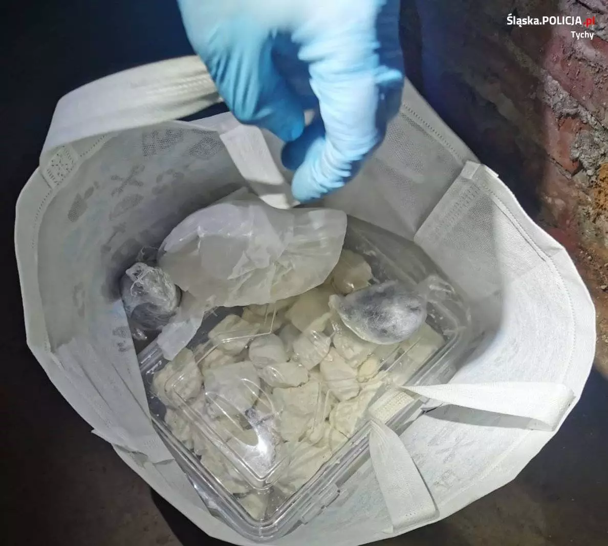 Kryminalni z Tych zajmujący się zwalczaniem przestępczości narkotykowej wspólnie z policjantami Wydziału do Zwalczania Przestępczości Pseudokibiców z Komendy Wojewódzkiej Policji w Katowicach uderzyli w przestępczość narkotykową. Z posiadanych przez tyskich mundurowych informacji wynikało, że 31-letni mieszkaniec miasta może posiadać znaczne ilości narkotyków. Policjanci się nie mylili. Po wykonaniu czynności z pomocą policjantów z Komendy Wojewódzkiej Policji w Katowicach oraz przewodnika wraz z psem służbowym policjanci znaleźli znaczne ilości amfetaminy, jakie zatrzymany przetrzymywał w piwnicy.