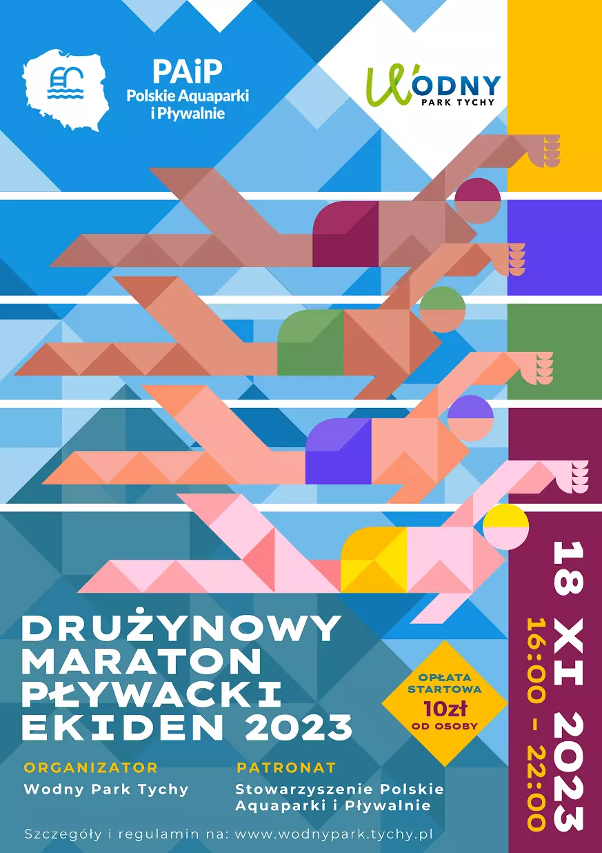 18 listopada w Wodny Parku Tychy odbędzie się jedno z największych w Polsce wydarzeń popularyzujących pływalnie - EKIDEN 2023. Impreza polegać będzie na wspólnym przepłynięciu dystansu maratońskiego tj. 42km i 195m.