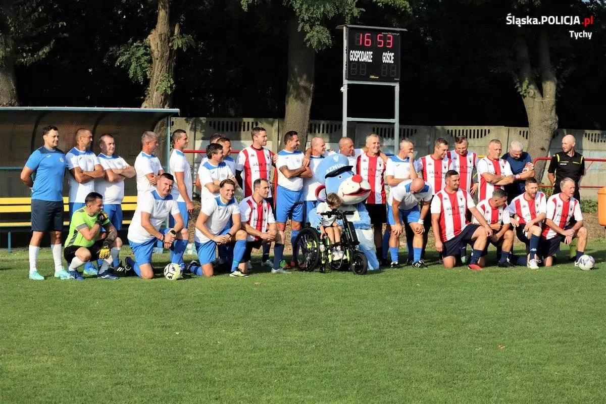 Policjanci z Tychów i Mikołowa wzięli udział w charytatywnym meczu piłki nożnej na rzecz 11-letniego Jasia – syna emerytowanego tyskiego policjanta. W trakcie festynu uczestnicy mieli okazję zobaczyć policyjny sprzęt oraz elementy wyposażenia używane na co dzień, a każdy chętny mógł zasiąść za kierownicą radiowozu i przez chwilę poczuć się jak prawdziwy policjant.