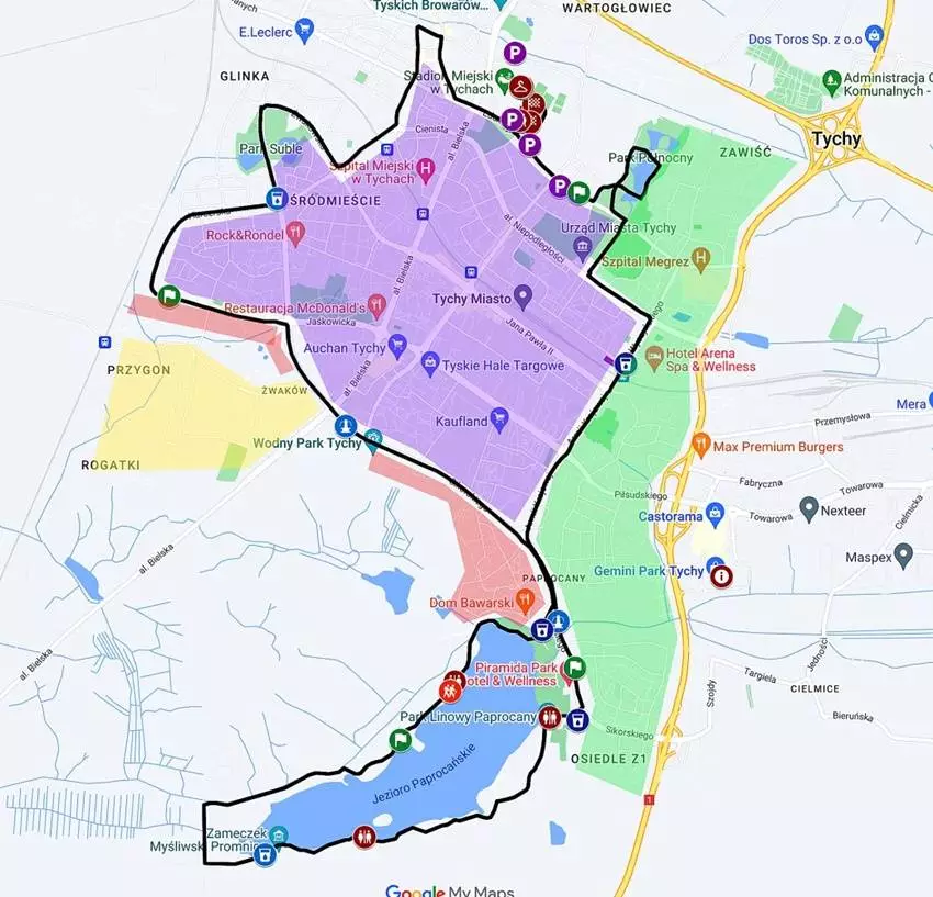 - Obszar CZERWONY nie będzie miał możliwości wyjazdu, dlatego organizatorzy proszą o wcześniejsze zaparkowanie samochodów w strefie FIOLETOWEJ lub ZIELONEJ jeśli ktoś planuje podróż w godzinach biegu. Drogi będą na bieżąco otwierane po przejechaniu samochodu zamykającego bieg.