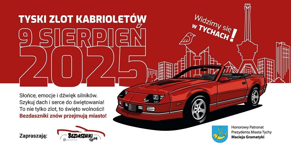 Już 9 sierpnia w Tychach odbędzie się trzecia edycja Tyskiego Zlotu Kabrioletów, organizowanego przez Bezdaszniki Tychy. To wyjątkowe wydarzenie, objęte patronatem prezydenta miasta Macieja Gramatyki, rozpocznie się o godzinie 12:00 na terenie Starego Browaru przy ul. Browarowej 7, a zakończy pod Pomnikiem Walki i Pracy („Żyrafa”) przy ul. Edukacji.