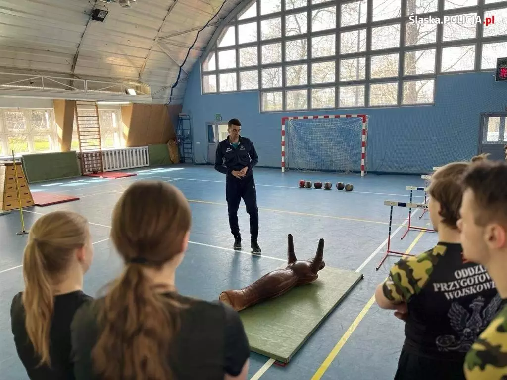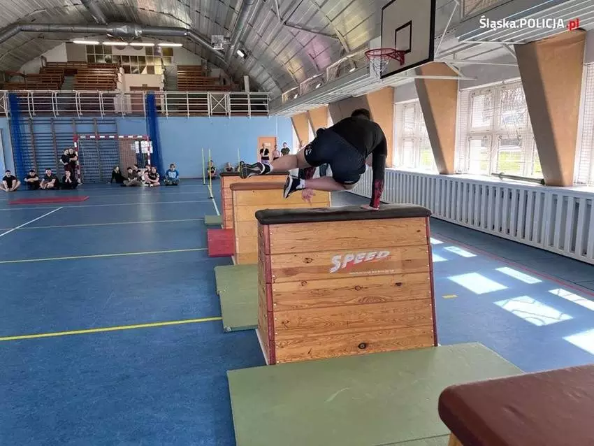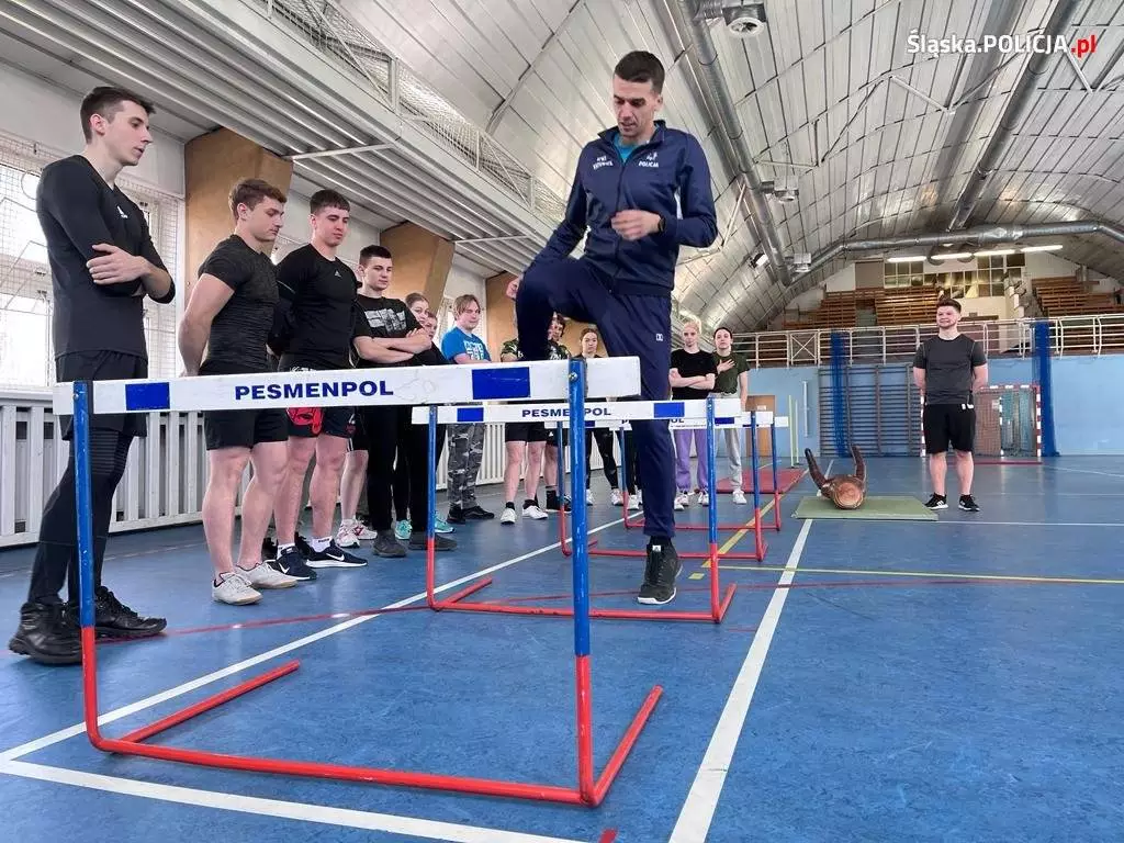 W minioną środę w hali sportowej katowickiego oddziału prewencji odbyły się zajęcia otwarte dla uczniów klas mundurowych z Liceum Ogólnokształcącego Zespołu Szkół w Bytomiu. Młodzież miała okazję spróbować swoich sił na próbnym torze przeszkód. Wszystko za sprawą współpracy bytomskich policyjnych profilaktyków z Instruktorami z Wydziału Doboru i Szkolenia katowickiej Komendy Wojewódzkiej Policji. Tego typu przedsięwzięcia organizowane są cyklicznie. W ten sposób śląscy policjanci wspólnie promują wśród młodzieży zawód policjanta. W połowie marca halę sportową OPP w Katowicach odwiedzili uczniowie z Zespołu Szkół imienia Orląt Lwowskich w Tychach. Oni również zmierzyli się z próbnym testem sprawności fizycznej, który jest początkowym etapem doboru do służby w naszej formacji. Wszystko odbyło się pod czujnym okiem policyjnych instruktorów. Podczas wspomnianych zajęć, młodzież dowiedziała się także, jak wyglądają wybrane etapy postępowania kwalifikacyjnego, jakie możliwości daje służba w Policji oraz jakie wymagania musi spełnić kandydat, marzący o zawodzie policjanta.