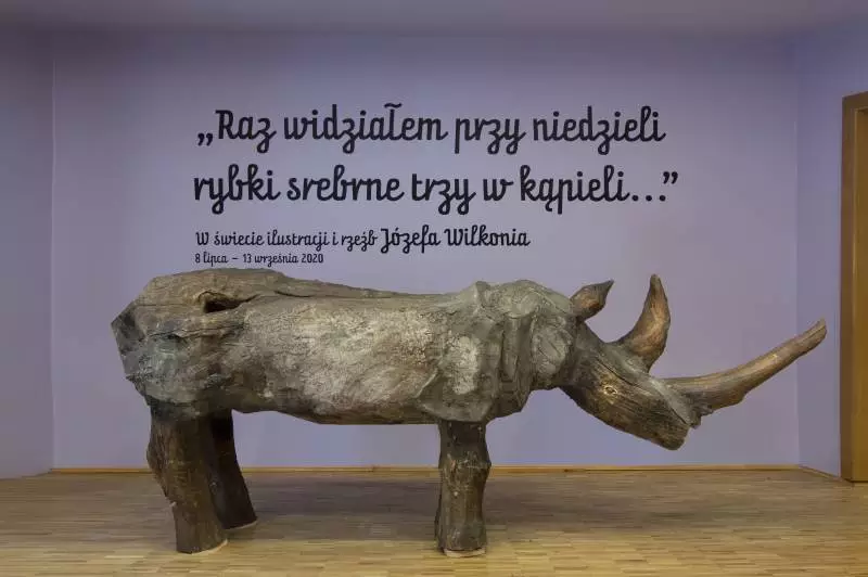 Ekspozycja jest zaproszeniem do świata kreowanego przez Józefa Wilkonia. Ten 90–letni mistrz ilustracji dziecięcej to też malarz, rzeźbiarz i autor scenografii. Zilustrował blisko dwieście książek dla dzieci i dorosłych – współpracował m.in. z „Naszą Księgarnią”, „Czytelnikiem”, Wydawnictwem Literackim, Krajową Agencją Wydawniczą. Jego oryginalny styl jest natychmiast rozpoznawalny dzięki charakterystycznej kresce, indywidualnym środkom wyrazu i malarskości przedstawienia.