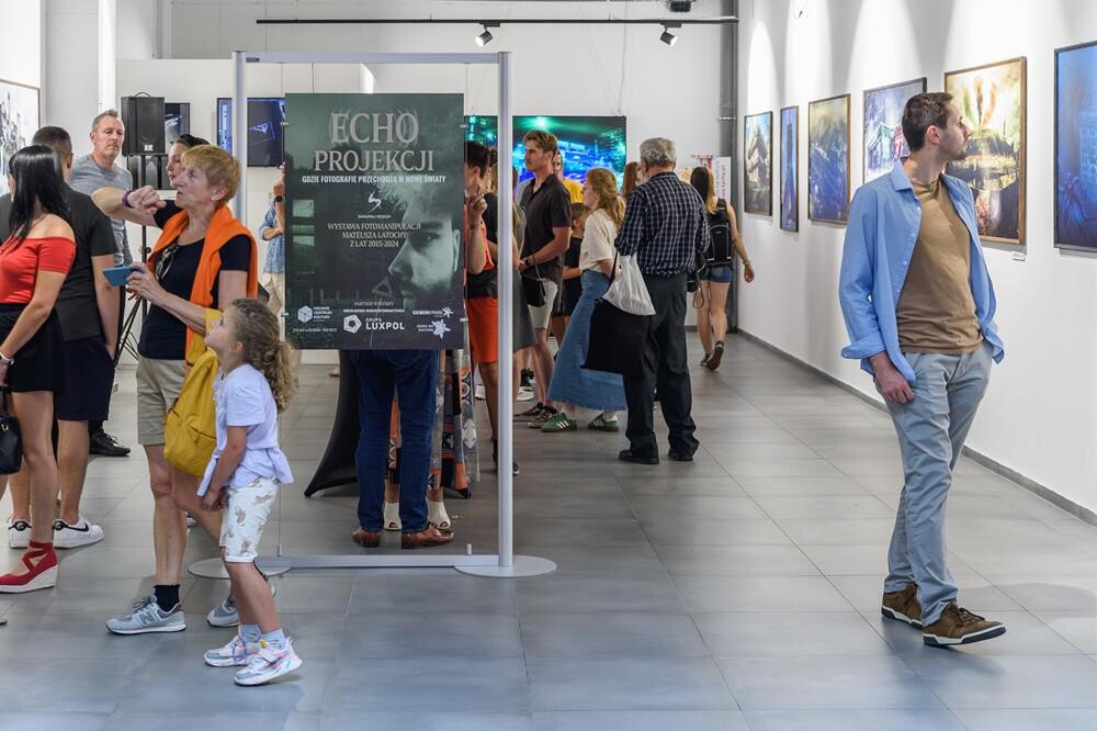 We wtorek, 22 lipca odbył się uroczysty wernisaż wystawy „Echo projekcji” w Okno na Kulturę w Gemini Park Tychy. Podczas spotkania goście mieli okazję poznać Mateusza Latochę – autora wystawy, porozmawiać z nim o kulisach powstawania jego prac i zgłębić proces twórczy, który przekształcił znane tyskie zakątki w futurystyczne wizje.