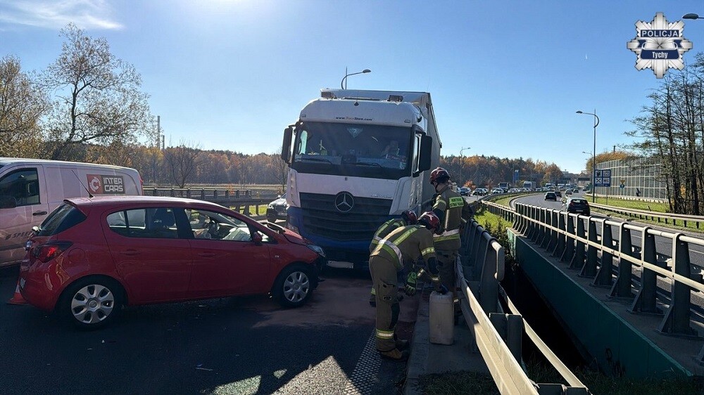 Wczoraj, na drodze krajowej nr 1, w rejonie węzła z drogą krajową nr 44, w kierunku Katowic, doszło do zdarzenia drogowego z udziałem samochodu osobowego oraz ciężarowego. Sprawca zdarzenia, kierująca samochodem osobowym, została ukarana mandatem karnym w wysokości 1,050 zł oraz otrzymała 10 punktów karnych.