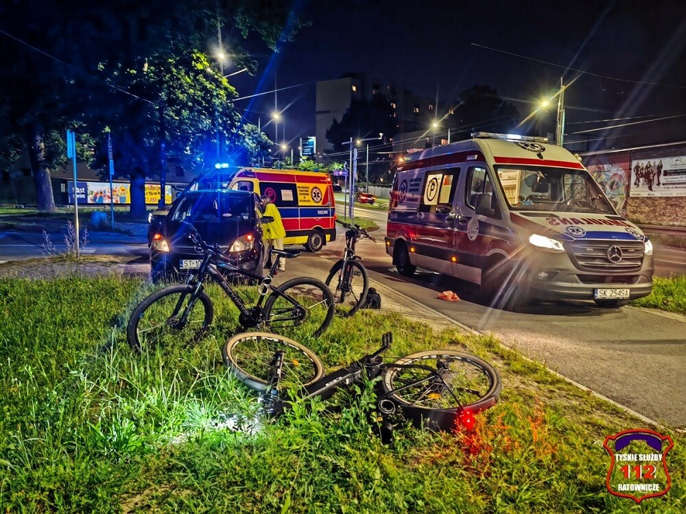 Do groźnego wypadku doszło 17 czerwca około godziny 22:20 na alei Piłsudskiego w Tychach. W zderzeniu udział brali: 58-letni kierujący rowerem elektrycznym oraz 42-letni użytkownik hulajnogi elektrycznej. Oboje z obrażeniami trafili do placówki medycznej.