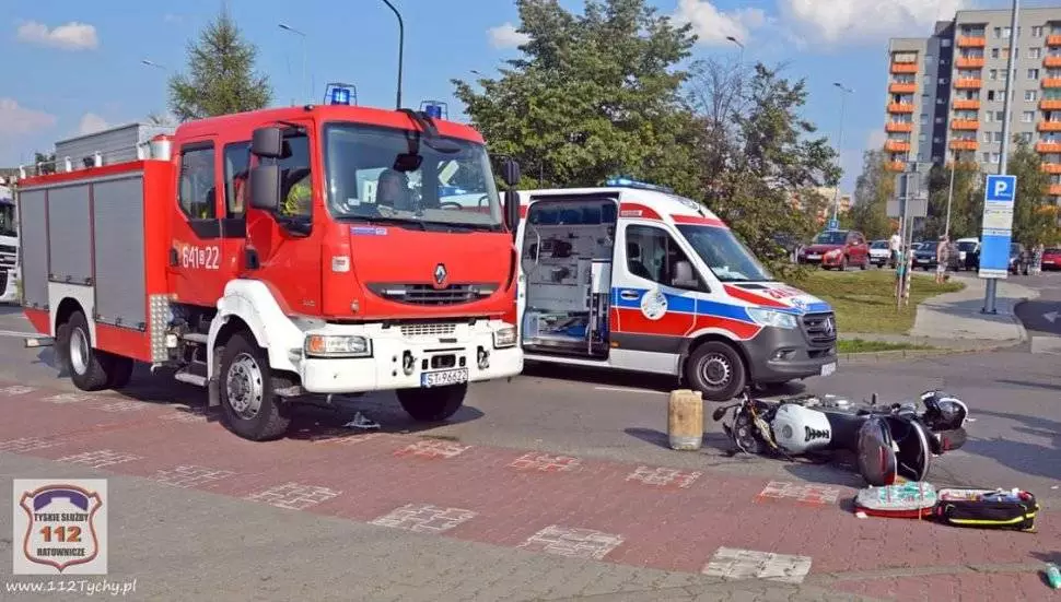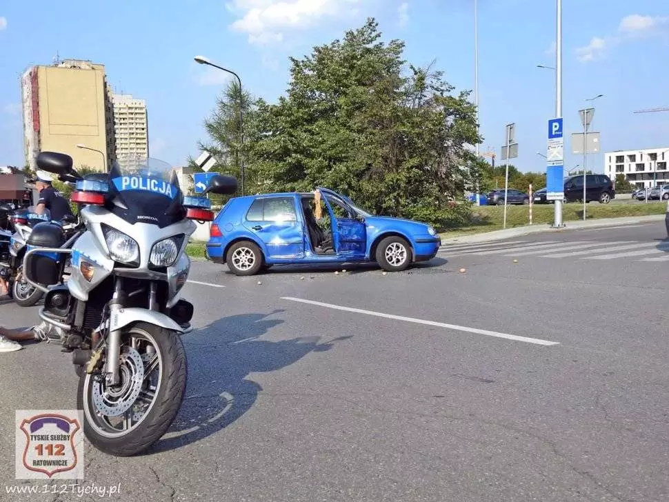 Jak wynika ze wstępnych ustaleń drogówki, 19 – letni kierowca Volkswagena Golfa, wykonując manewr skrętu w lewo, nie ustąpił pierwszeństwa przejazdu jadącemu motocykliście. W wyniku zdarzenia 62-letni kierujący jednośladem doznał otwartego złamania ręki, a podróżująca volkswagenem pasażerka pojazdu rany ciętej barku. Poszkodowani trafili do szpitala. Tyscy policjanci wyjaśniają szczegółowe okoliczności tego zdarzenia i apelują o ostrożność na drodze.