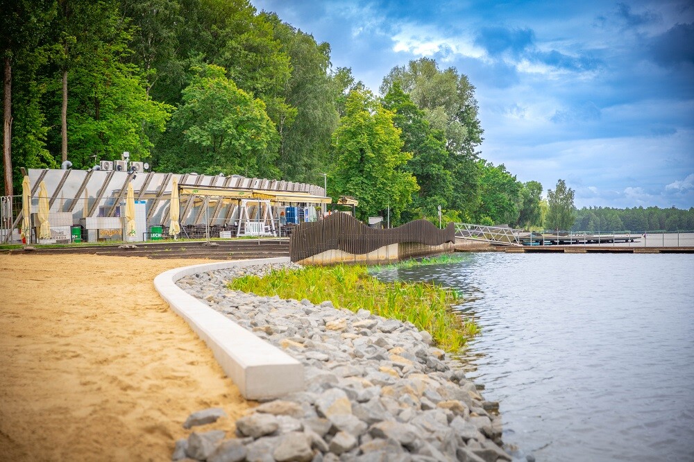 Zrealizowane prace obejmowały wykonanie muru oporowego o długości 34,34 m, złożonego z 136 żelbetowych pali, narzutu kamiennego od strony wody oraz niwelację i wzmocnienie dna jeziora. Ponadto, na powierzchni około 150 m² posadzono roślinność wodną, co wspomaga naturalne oczyszczanie wody. Na części plaży pojawił się również nowy piasek z atestem higienicznym. Koszt tej inwestycji wyniósł 997 529,66 zł.