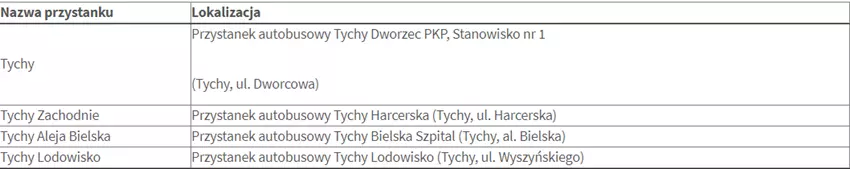 Miejsca zatrzymania zastępczej komunikacji autobusowej