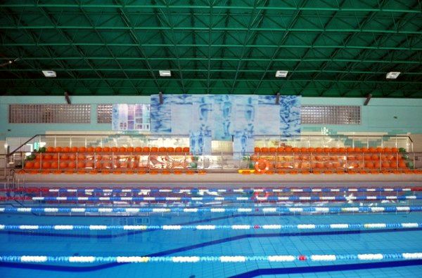 - basen sportowy – z wieżą do skoków 3-metrową, 2 trampolinami 1-metrowymi, z widownią